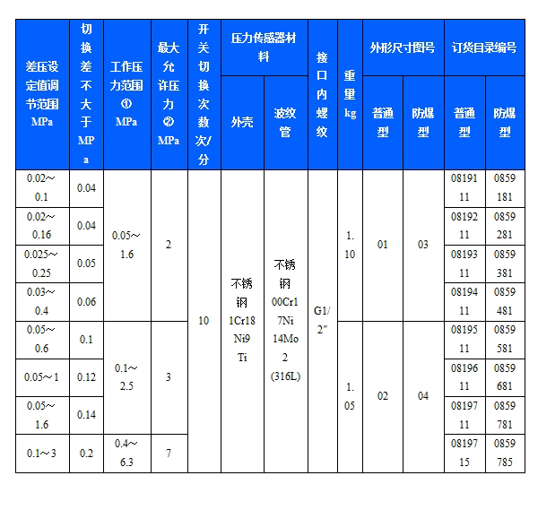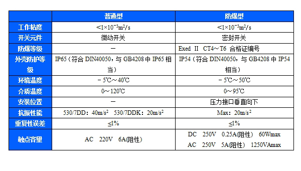 530/7DD防爆差壓開關采用波紋管式的傳感器,可用于腐蝕性的氣體和液體介質。530/7DD防爆差壓開關的設定值可調,調節(jié)范圍0.02~3MPa,其工作壓力范圍0.05~6.3MPa。