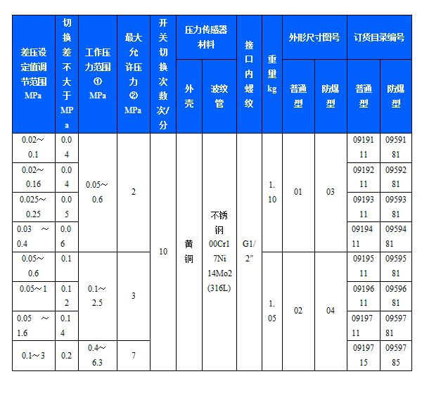 540/7DD差壓開關(guān)采用波紋管式的傳感器,可用于無腐蝕性的氣體和液體介質(zhì)。540/7DD差壓開關(guān)的設(shè)定值可調(diào),調(diào)節(jié)范圍0.02~3MPa,其工作壓力范圍0.05~6.3MPa。