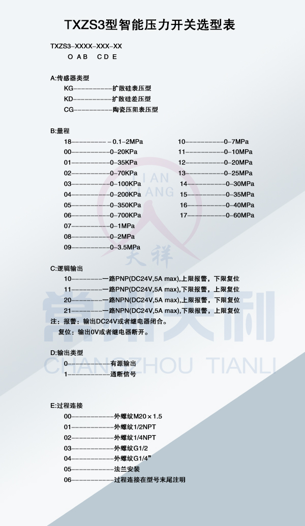 TXZS3智能壓力開(kāi)關(guān)基本參數(shù)