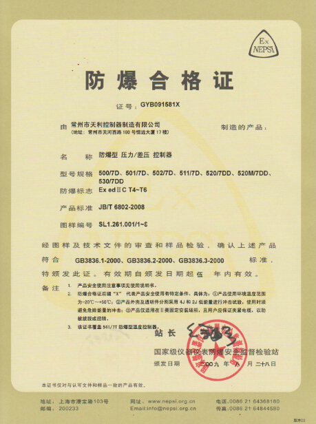 4壓力開(kāi)關(guān)的防爆等級(jí)