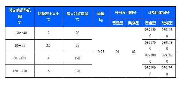 541/7T防爆溫度開關(guān)采用帶毛細管溫包式傳感器,可用于流動的中性氣體和液體介質(zhì),如果介質(zhì)為腐蝕性,安裝時可選用不銹鋼溫包保護套套在銅質(zhì)溫包外(見附件)。541/7T防爆溫度開關(guān)的設(shè)定值可調(diào),調(diào)節(jié)范圍-30~280℃。