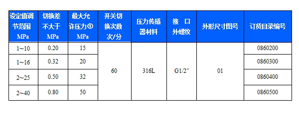 512/9D壓力開關(guān)壓力控制范圍大、控制精度高、切換差小、二組微動開關(guān)的切換值可分別設(shè)定、傳感器適用腐蝕性介質(zhì)(氣體或液體)。
