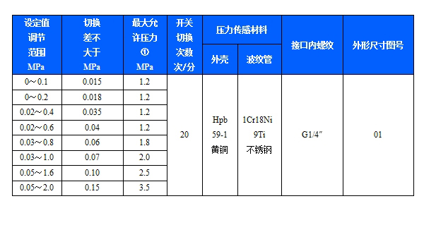 YWK-100壓力開關(guān)采用波紋管式傳感器,可用于空氣、蒸汽等中性氣體和水、制冷劑、油等液體介質(zhì),控制器設(shè)定值可調(diào),調(diào)節(jié)范圍0~2MPa,YWK-100壓力開關(guān)殼體采用鑄鋁,為防水型。