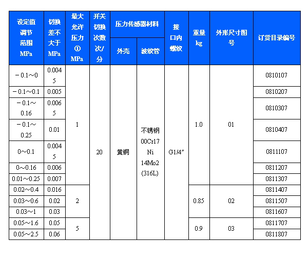 規(guī)格:切換差不可調(diào)(小切換差,無(wú)防爆型)